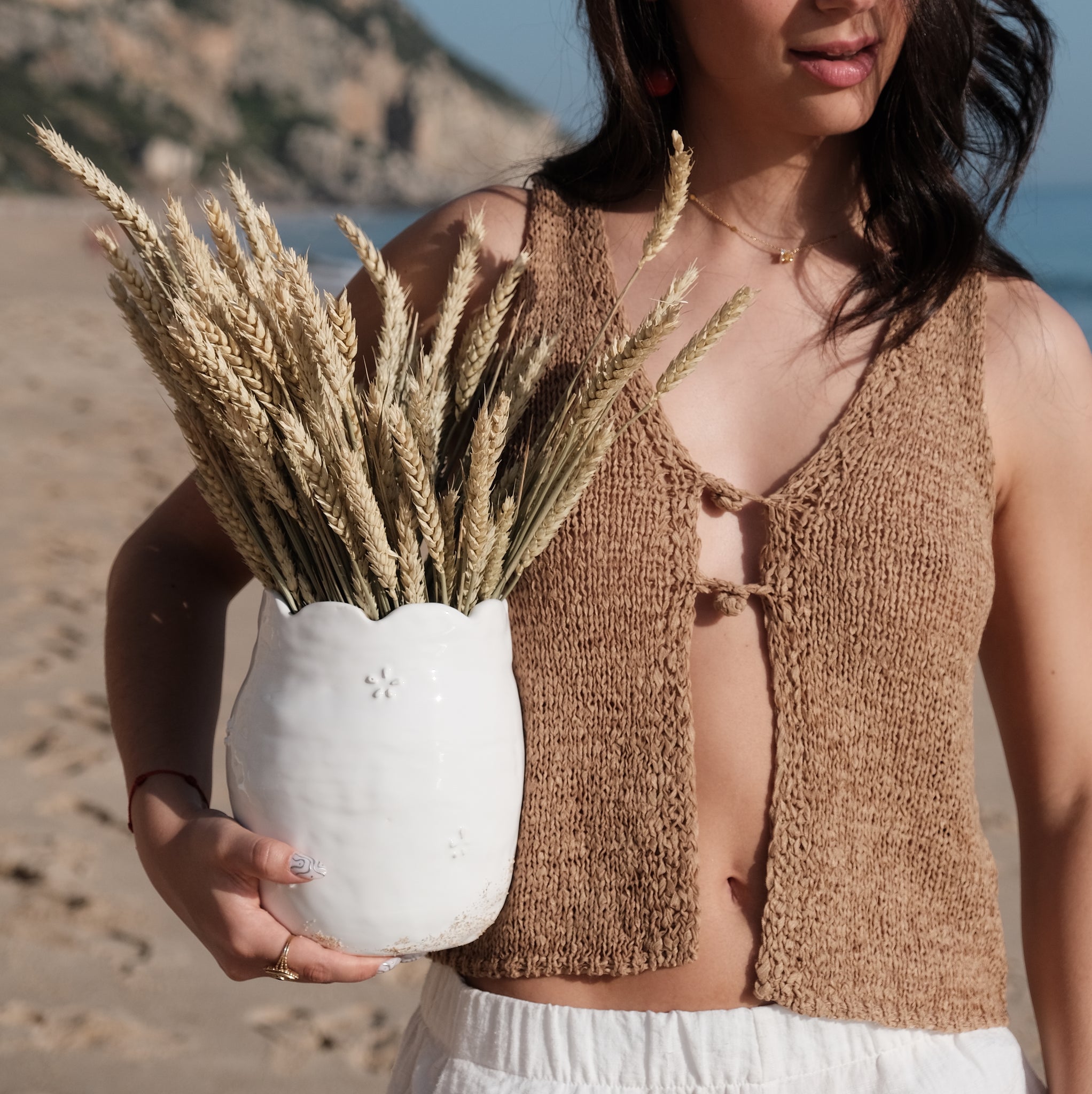 A piece to cherish in your soul. The perfect harmony of morning light and bloomy details that flow with the sun. A reflection of the path where new stories begin. Timeless and unique ceramics created to elevate your daily rituals.