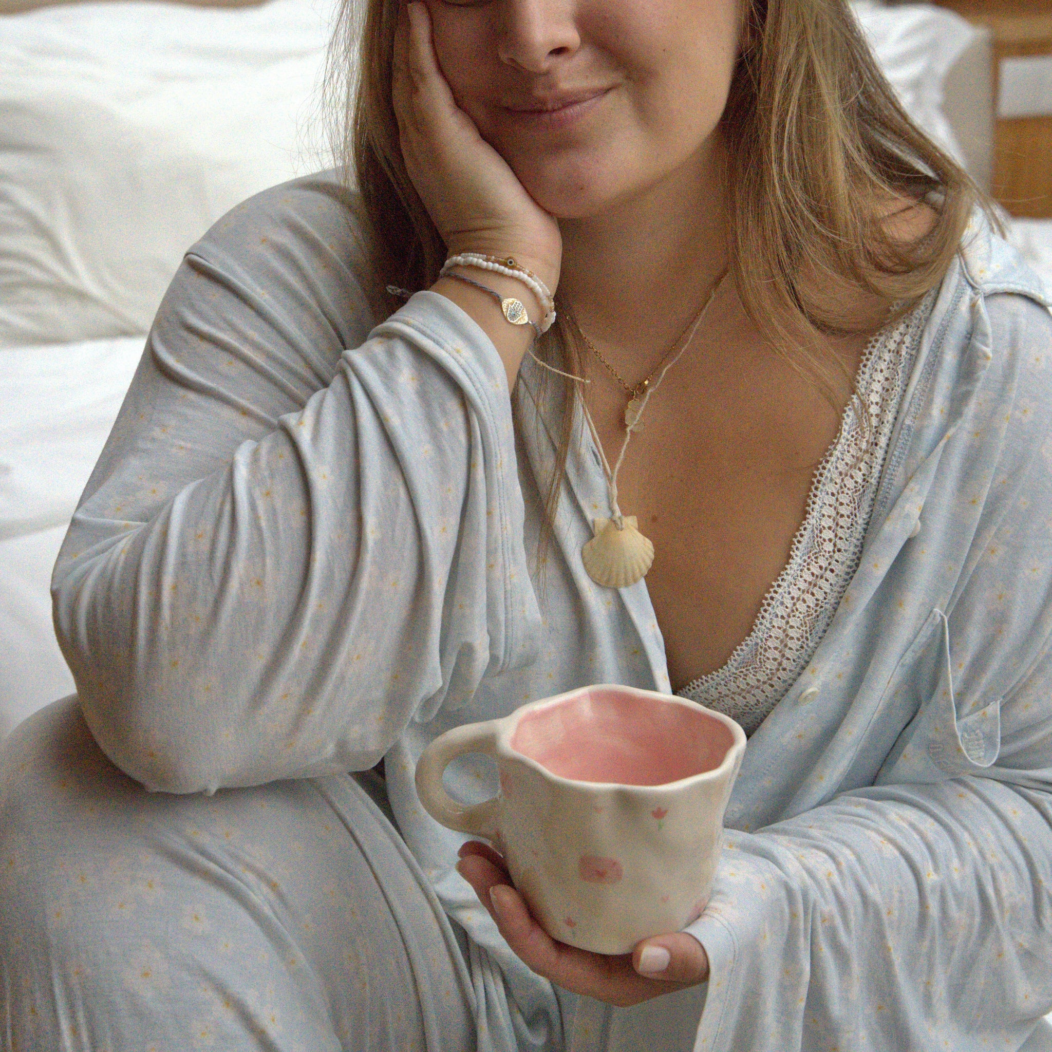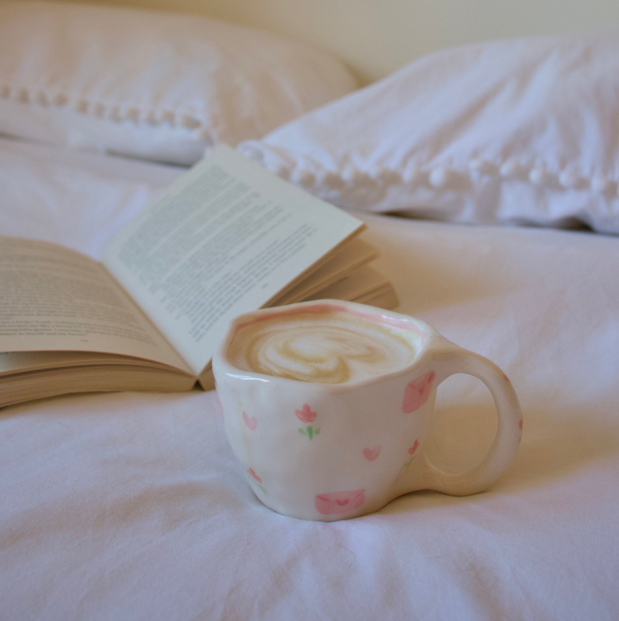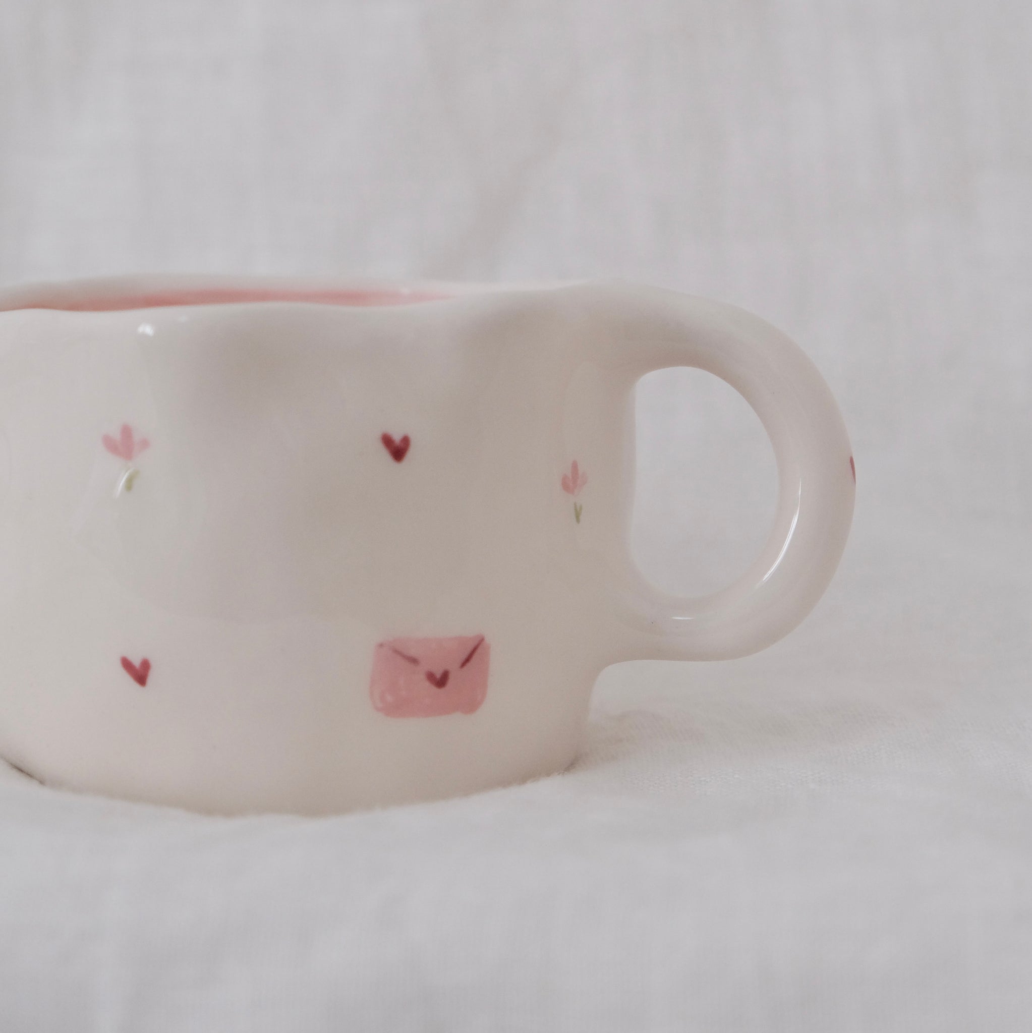 The "love letter" mug was created as a love language. My loved ones say that I should write in a diary all the memories that leave me with a smile on my face, and leave on a simple sheet of paper all the emotions to remember one day. This is the mug that represents it all this in a harmony of white and pink tones that we dedicate to those we love the most <3