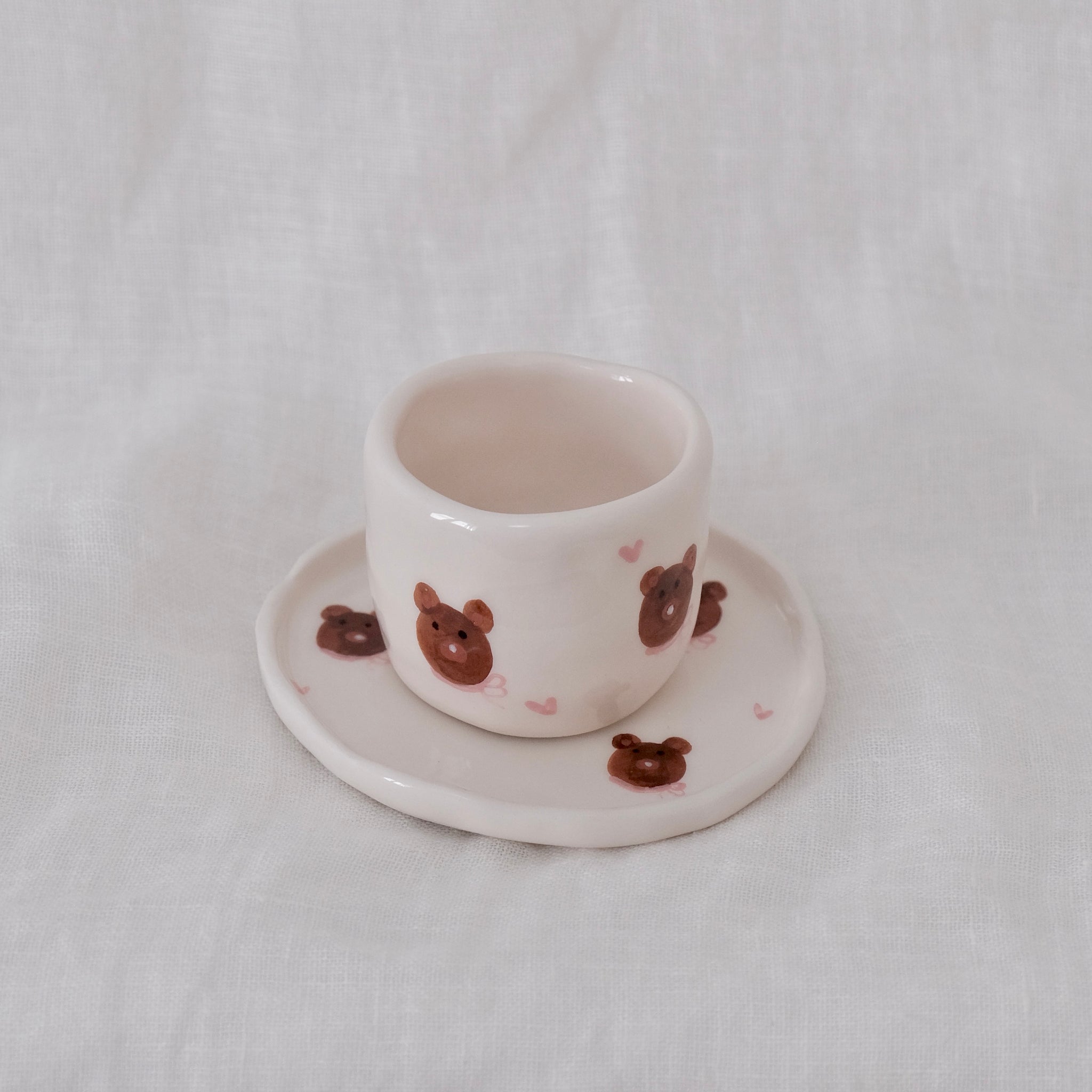 Size: Cup - 5cm x 5.5cm aprox. | Plate - 7.5cm diameter